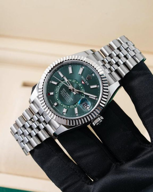 Rolex sky dweller silver green